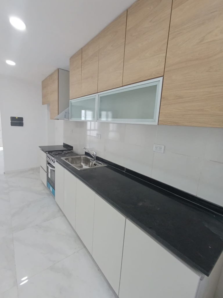 Descripcion: Carpinteria aluinio DVH termico. pisos porcelanato. Aire acondicionado frio/alor, Living comedor, Cocina independiente, muebles de cocina bajo mesada y alacena a medida, en melamina simil madera clara. artefacto de cocina. Dos baños. amplios placares.