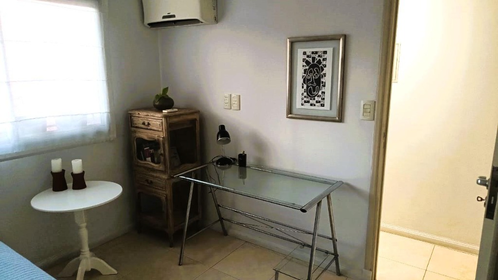 Cuenta con dos dormitorios, con placar uno de ellos en suite con placar, aire acondicionado y baño