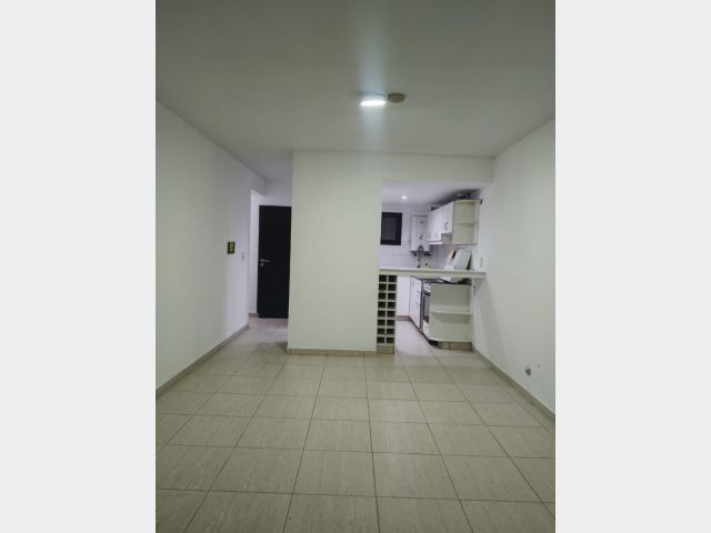 Amplio Departamento con dos dormitorios completos, cocina comedor con barra desayunadora, balcon, baño y cochera.