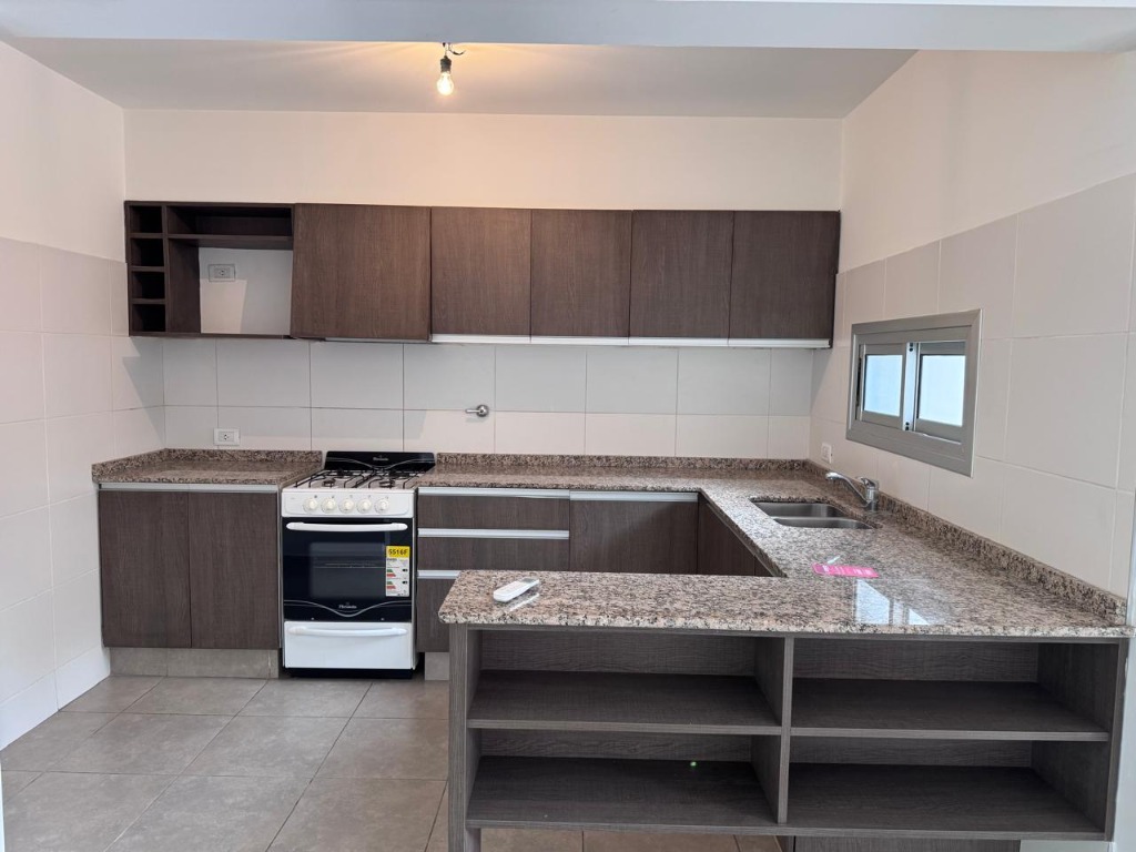 Hermoso departamento, cuenta con dos plantas, en Planta Baja: estar comedor con cocina integrada (cuenta con artefacto de cocina), mesada de granito natural, doble bacha con grifería monocomando, muebles de alacenas y bajo mesada, desayunador o pasaplatos, con mesada de granito. Un dormitorio con placar, toilette, y patio con lavandería (cuenta con termotanque en perfecto estado).-
