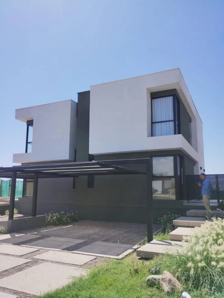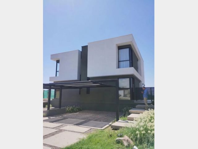 La vivienda está emplazada en un terreno de 250 m2, tiene una superficie total cubierta de 120m2, más la cochera doble pergolada.