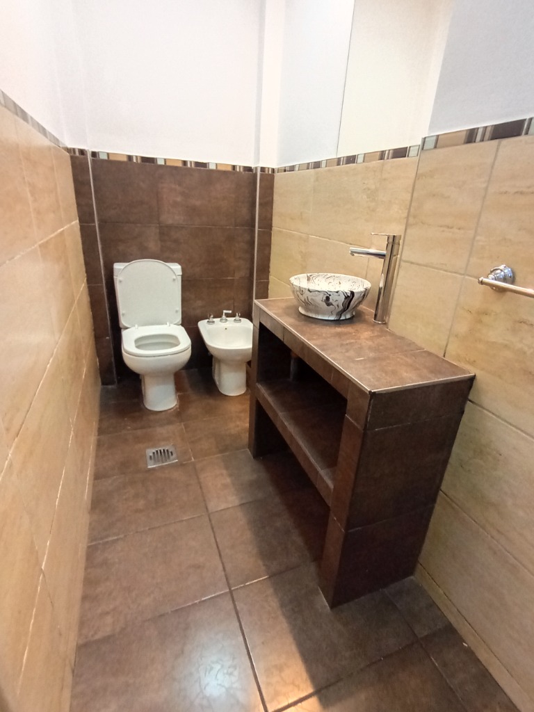 Cochera doble, living comedor, comedor diario, cocina, toilette, patio chico con churrasquera. Planta alta: tres dormitorios con placares,baño principal (original). Terraza a nivel de los dormitorios.