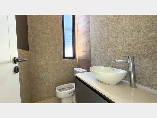 Construido con materiales de primera calidad, este dúplex cuenta con cielorrasos suspendidos de 2,80 mts de altura, pisos de porcelanato de gran formato (1,20 x 1,20 mts) y carpintería de aluminio negro con doble vidrio hermético (DVH). La cocina está equipada con anafe, horno empotrado, mesadas de granito y extractor con iluminación LED bajo alacena. Para tu comodidad, la climatización incluye piso radiante y equipos split frío/calor, así como una parrilla de diseño con leñero incorporado. Además, el barrio ofrece una amplia gama de amenities, como campo de golf, piscinas, canchas de tenis y un gimnasio completamente equipado, todo ello bajo un estricto sistema de seguridad las 24 horas.