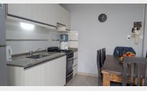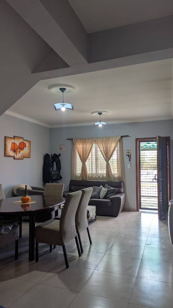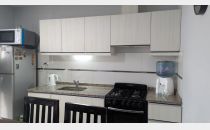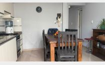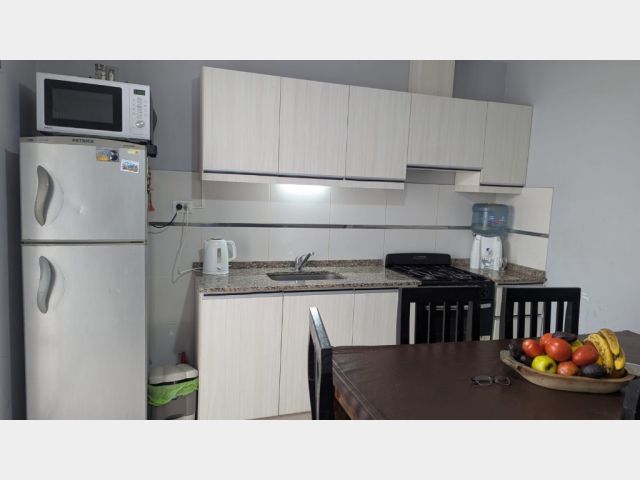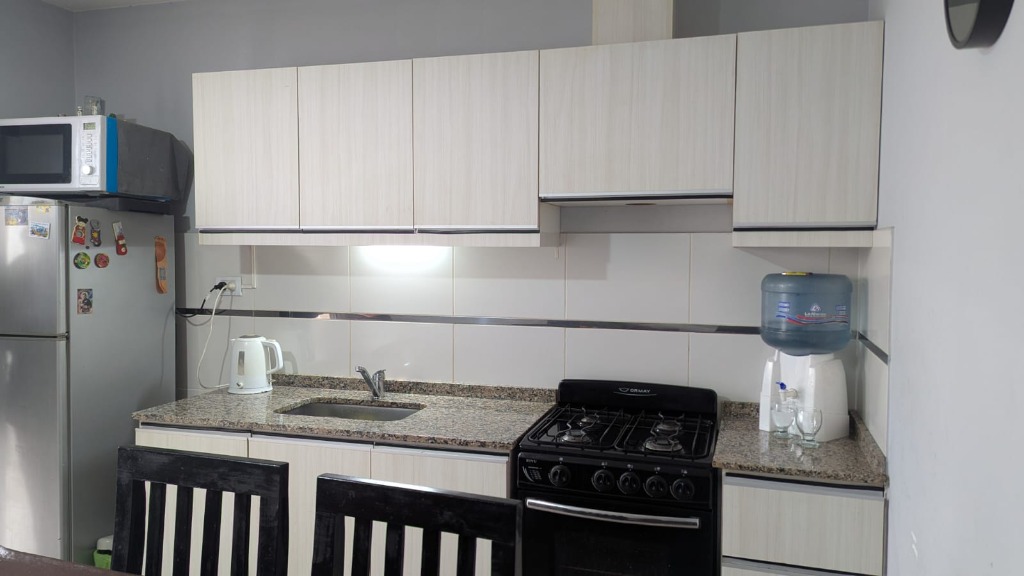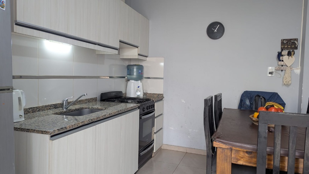 Living comedor, cocina comedor con salida al patio, el cual cuenta con churrasquera, con mueble de guardado y leonera.