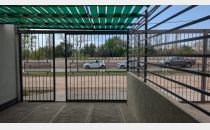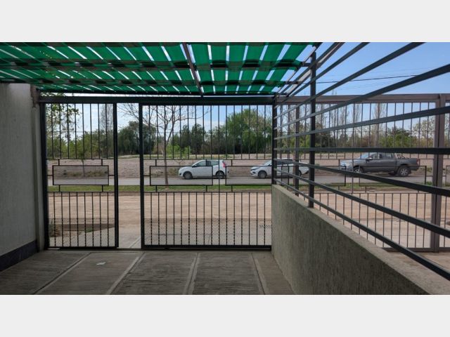 Cochera para un vehículo, cerrada con rejas y leonera.