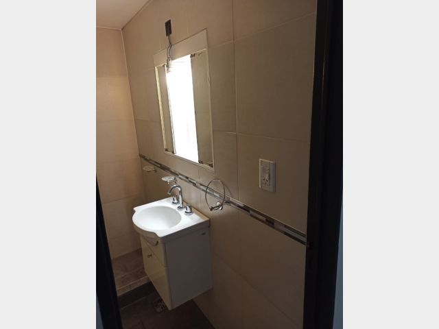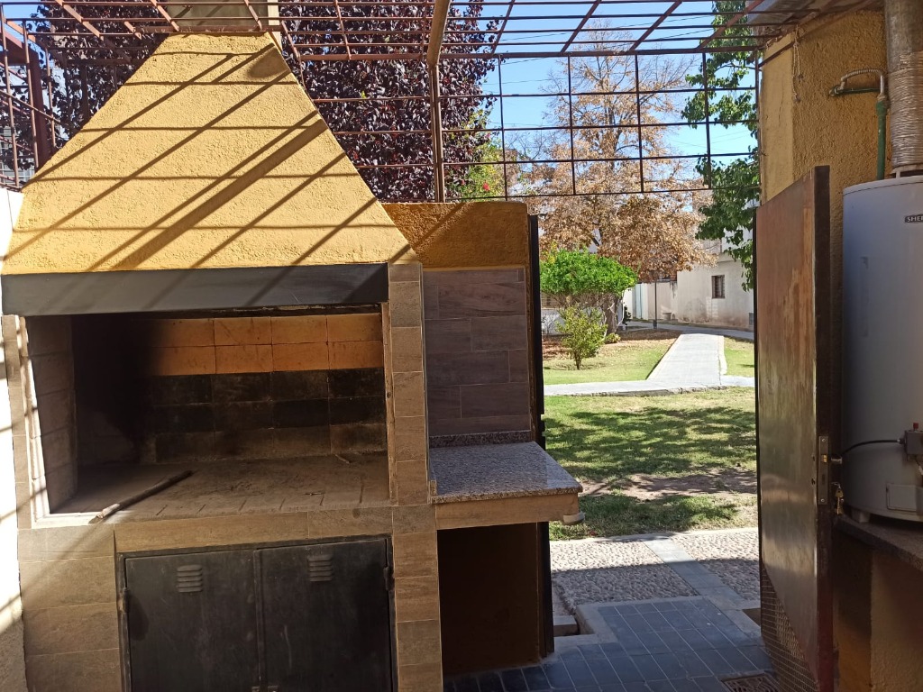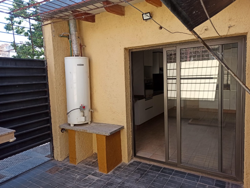 cocina comedor con salida a un pequeño patio (propio) donde encontramos una parrilla y el termotanque, también tenemos acceso al patio del complejo a través de una puerta.