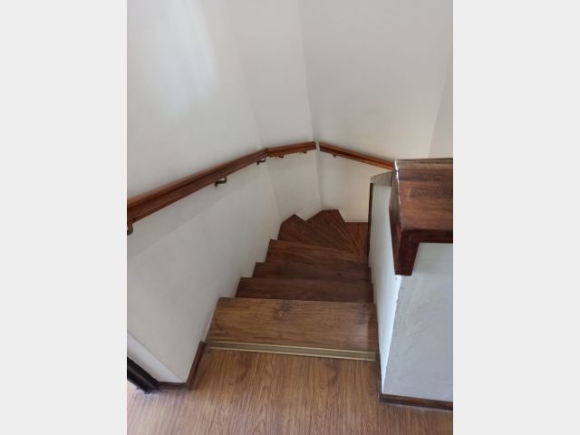 hacemos a un amplio living/sala de juego, a nuestra derecha tenemos un baño, seguida de la escalera que nos lleva al piso superior y a su lado un espacio de guarda, una amplia