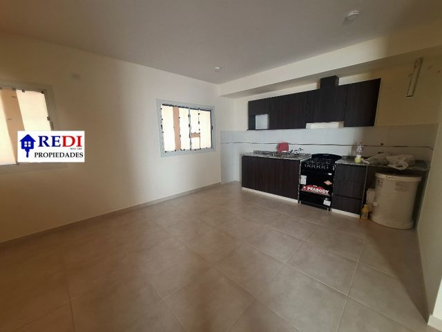 * Cocina con amoblamientos, integrada al living-comedor