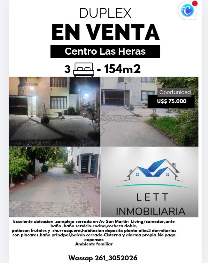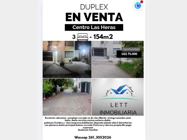 Duplex calle San Martin Las Heras