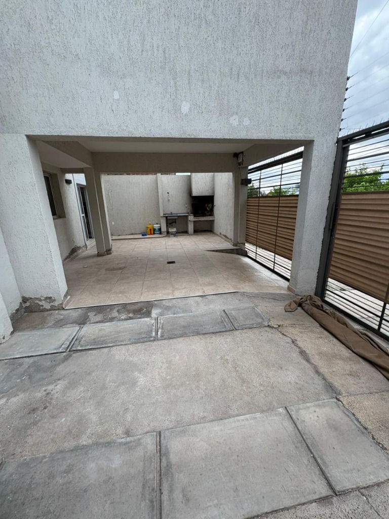 Amplio patio con cochera para 2 autos y 2 portones electricos automaticos. Parrilla.