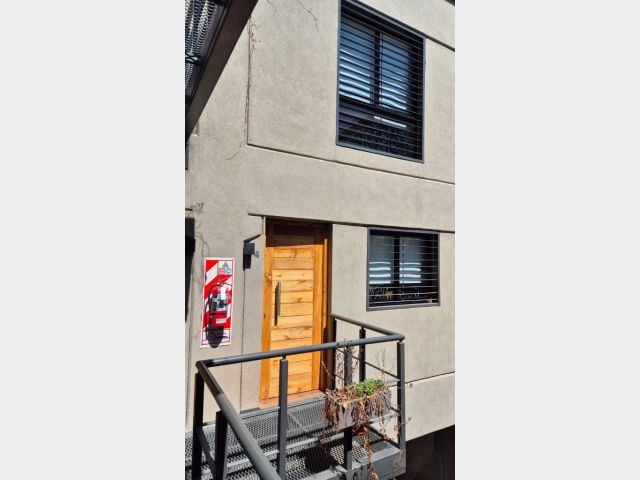 El complejo cuenta con dos dúplex y dos departamentos de 100 metros cubiertos cada uno, todos poseen dos dormitorios, cocina con amoblamiento completo y anafe eléctrico, amplio living comedor, dos baños por unidad, placares de calidad, pisos de porcelanato, aberturas de aluminio de alta prestación, calefacción por loza radiante, iluminación y grifería de primera línea y un gran aprovechamiento de todos los espacios con placares de excelente calidad para guardado. Además, incluye un local comercial al frente, ideal para oficina, showroom o comercio, actualmente acondicionado para vivienda tipo mono ambiente y cuatro cocheras con acceso por portón automatizado.