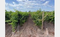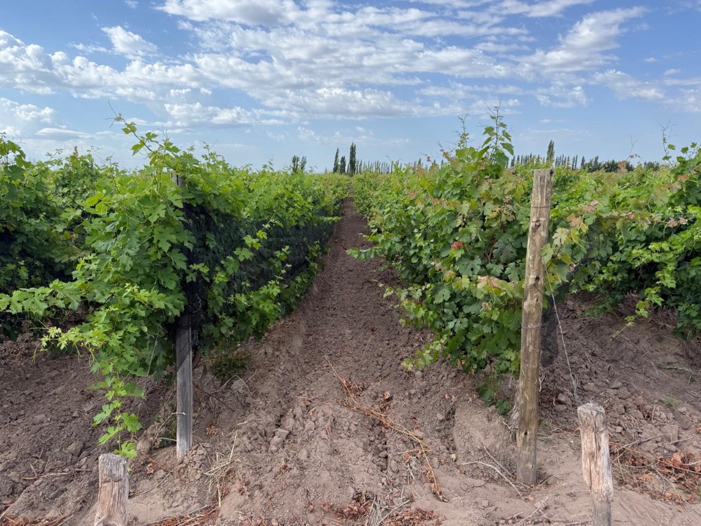 Viñedos en espaldero con tela antigranizo. 5 hectáreas implantadas. Variedades: Bonarda y Barbera.