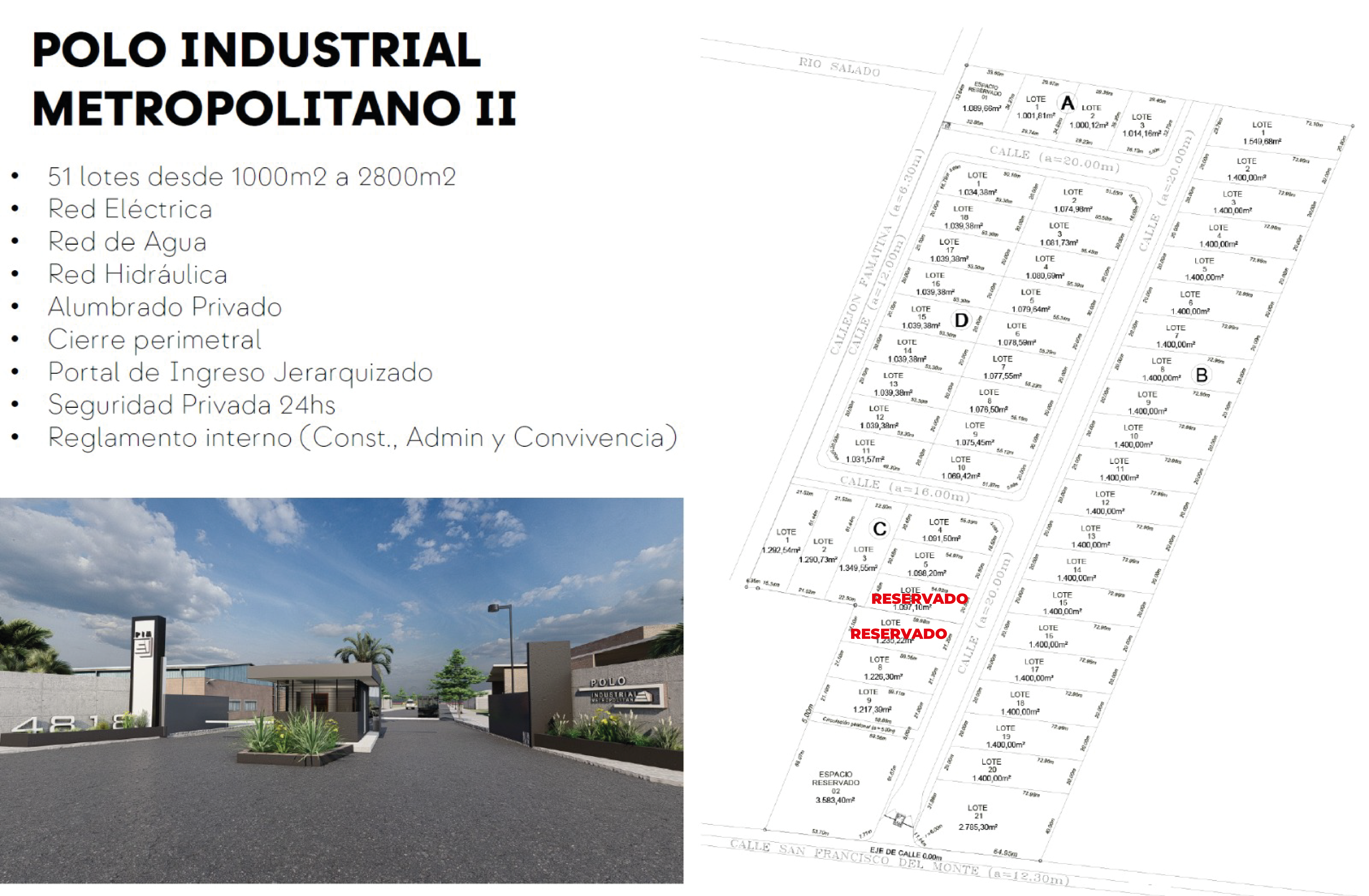 * 51 lotes desde 1000m² a 2800m²