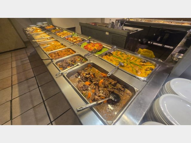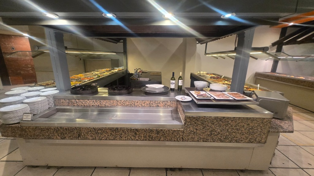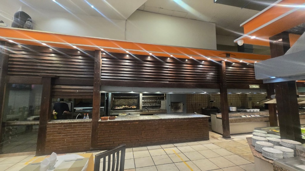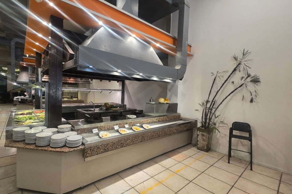 DISPONE DE COCINA INDUSTRIAL COMPLETAMENTE EQUIPADA, PARRILLA DE GRAN PORTE, SECTOR DE FUEGOS, ISLAS DE SERVICIO TIPO BUFFET, MESADAS DE GRANITO Y ACERO INOXIDABLE, CÁMARAS DE FRÍO (INCLUÍDA BAJO CERO), ÁREAS DIFERENCIADAS DE PREPARACIÓN Y LAVADO, SECTOR PARA ESPECTACULOS EN VIVO CON EQUIPOS DE SONIDO, CAMARINES PARA PERSONAL Y BAÑOS COMPLETOS INDEPENDIENTES PARA CADA SEXO DE AMPLIA CAPACIDAD. INSTALACIONES PENSADAS PARA ALTO VOLUMEN OPERATIVO Y CONTINUIDAD DE SERVICIO.
