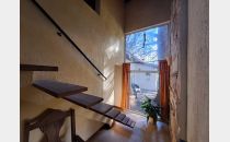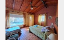 Hacia el norte se ubica una 2da vivienda, de ladrillo visto, con un estar comedor de doble altura con un hogar a leña escultural revestido en piedra, de doble altura. Esta cuenta con 2 baños completos, y 2 dormitorios, construida tambien en 1992. Y hacia la parte trasera del predio, se ubican el quincho, la pileta, varios sectores de jardín más privados para cada vivienda, y 3 casas de 2 plantas, completas con 3 dormitorios y 2 baños cada una, con amplias galerías, y equipamiento y mobiliario completo para alquiler turístico, construidas en los años 2006 y 2009.