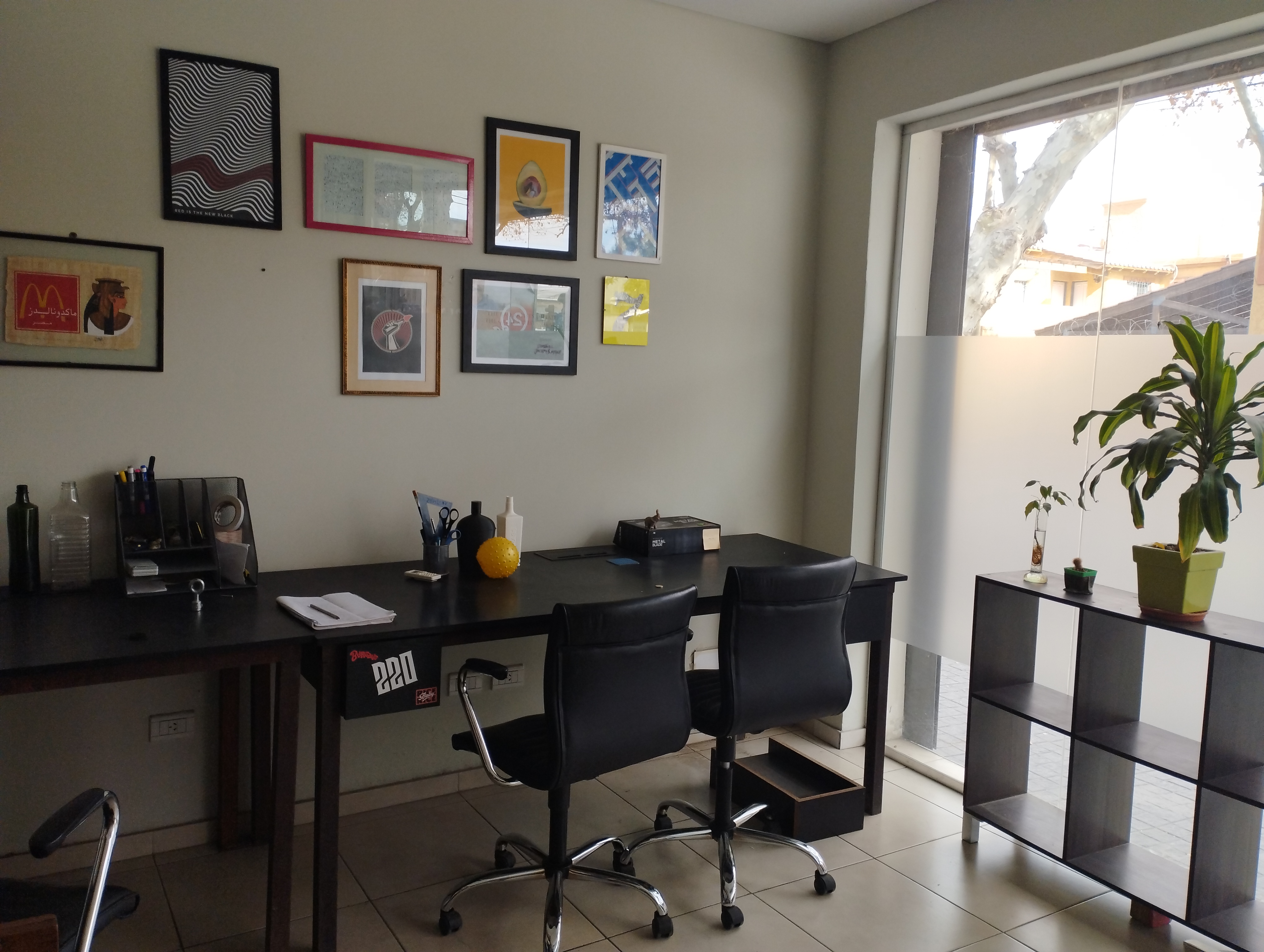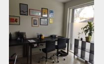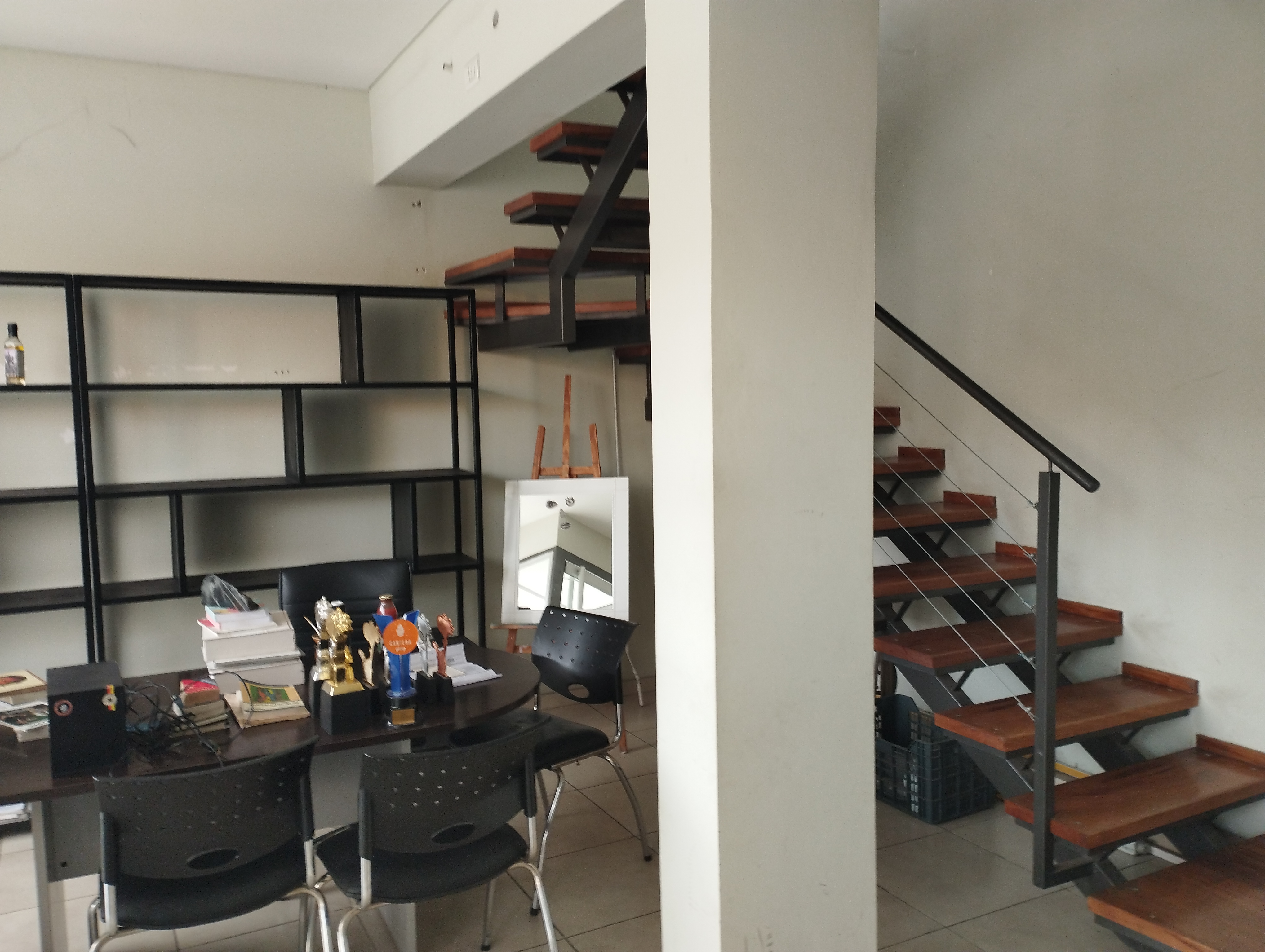 La planta baja está distribuida por un salón con vidrieras a la calle, una kitchinette y un baño. En planta alta un salón diáfano con un privado y un baño.