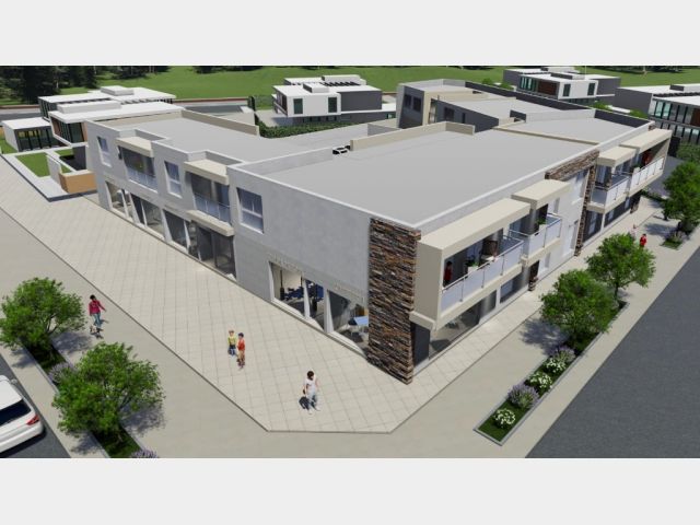 El complejo cuenta con 5 locales comerciales en planta baja, con superficies desde 28 m² hasta 70 m² aprox., todos con baño incluido.