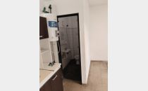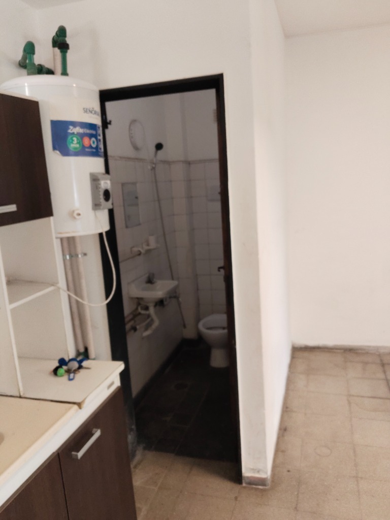 Constante de Persiana enrrollable frontal con blindex, muy luminioso, con cocina y mobiliario, baño con ducha.