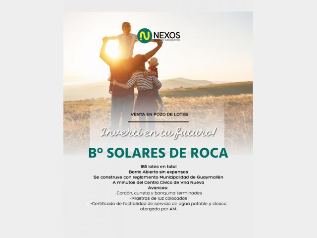 LOTE EN VENTA EN B° SOLARES DE ROCA en calle Libertad y Roca a minutos del centro de Villa Nueva y Municipalidad.