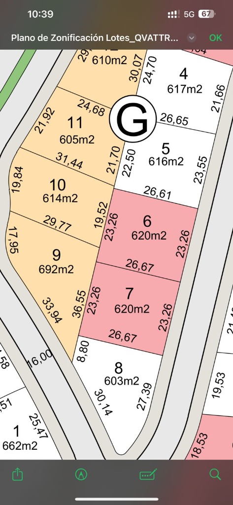 Ubicación del lote: Manzana G, frente Este.