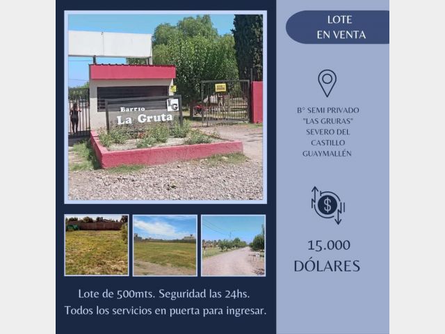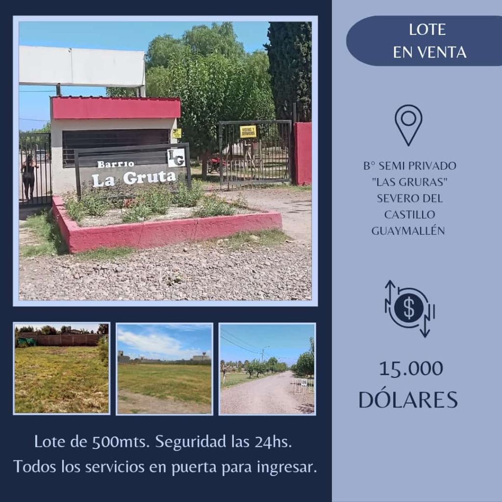 Barrio "La Gruta" ubicado en calle Severo del Castillo, Los Corralitos, Guaymallén, a pasos de colegios mercados ,colectivos en la puerta del barrio. Zona tranquila a pasos del centro de corralitos.