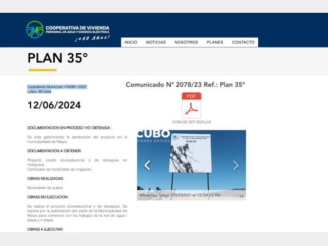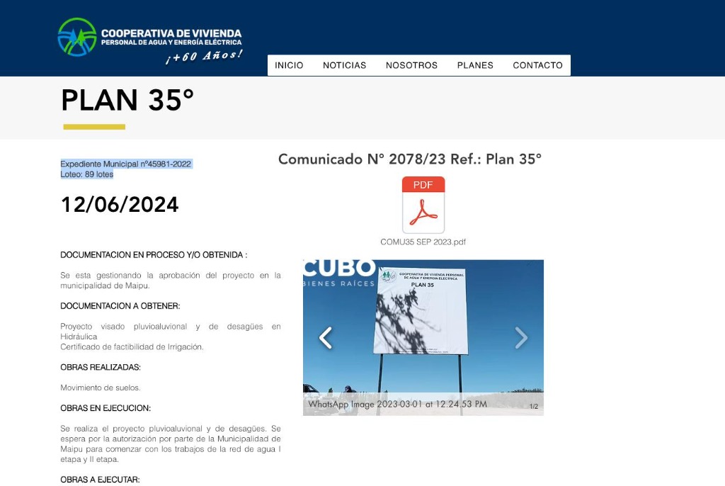 Se realiza el proyecto pluvioaluvional y de desagües. Se espera por la autorización por parte de la Municipalidad de Maipú para comenzar con los trabajos de la red de agua I etapa y II etapa.