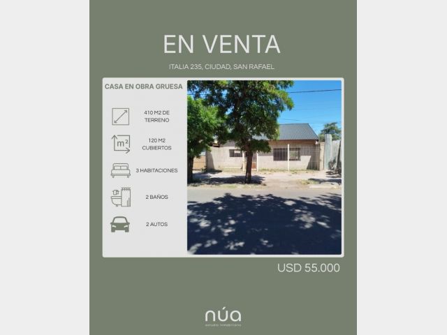 Casa en obra gruesa ubicada en calle Italia 235, ciudad de San Rafael.