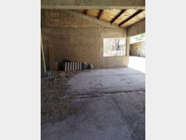 Posee patio con churrasquera y tinglado para el guardado de un vehículo.