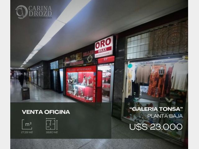 “CARINA DROZD gestiones inmobiliarias" VENDE: LOCAL COMERCIAL CENTRICO: "GALERIA TONSA" Saturno 27: con ingreso por Avda. San Martín, calle Catamarca y Avda. San Juan. NIVEL B. PISO PLANTA BAJA. SUPERFICIE: 27,29 m2 totales y 18,80 m2 cubiertos propios. Consta de: SALON con ENTREPISO- Baño Compartido en cada piso. ESCRITURACION INMEDIATA. VALOR: U$S 23.000. Escucho OFERTAS por pago contado. FINANCIACION Propia a conversar. Alquilado hasta Marzo 2026