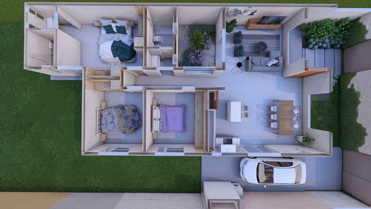 La casa cuenta con 1 baño completo, perfecto para mantener la privacidad y la tranquilidad en tu hogar. Además, podrás estacionar tus vehículos de forma segura en los 2 garajes disponibles.