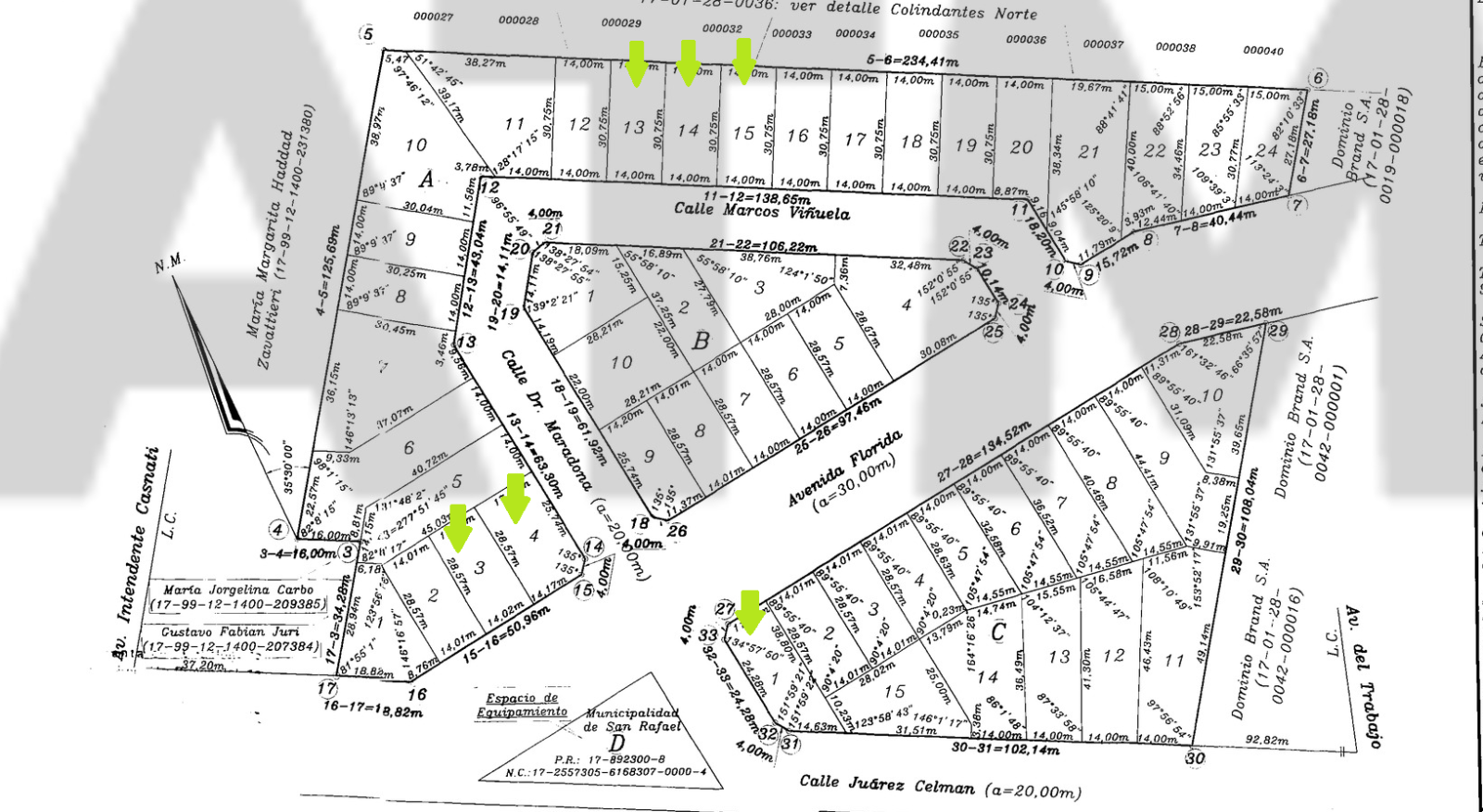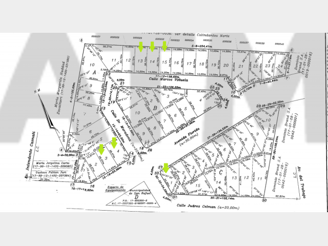 Oportunidad única de inversión en San Rafael, con la venta de seis lotes ubicados sobre la calle Juárez Celman y sus inmediaciones. Tres de estos lotes disponen de una superficie total de 430 metros cuadrados, mientras que otro cuenta con 400 metros. Adicionalmente, dos lotes en esquina ofrecen superficies de 481 y 471 metros cuadrados, brindando versatilidad para diferentes proyectos.